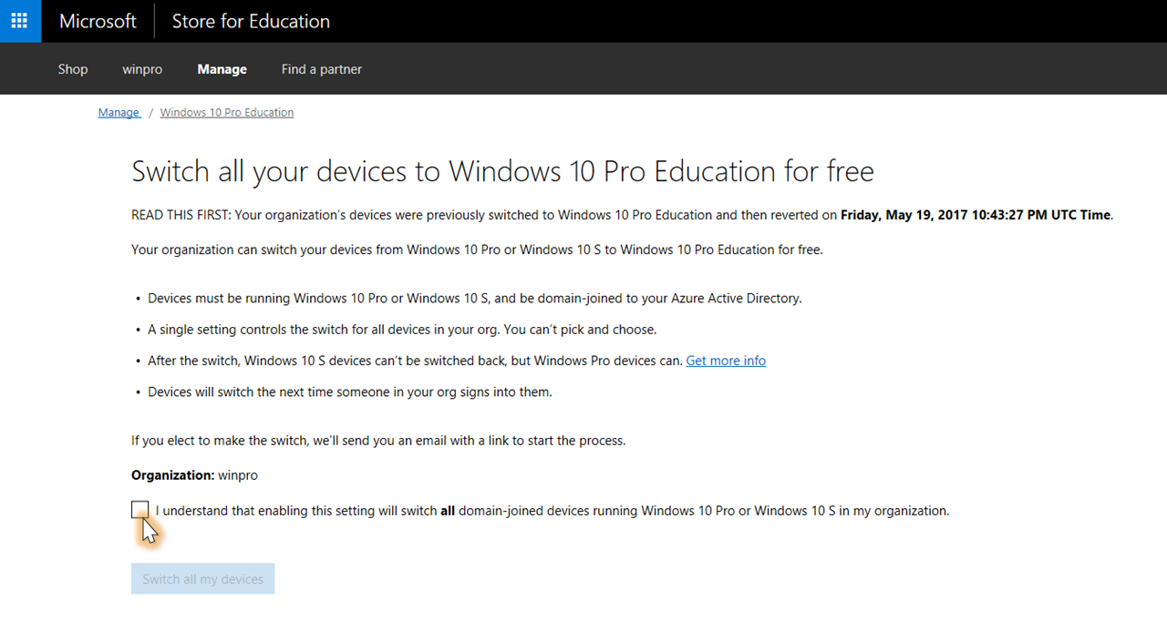 updated the switch to win10 pro edu topic